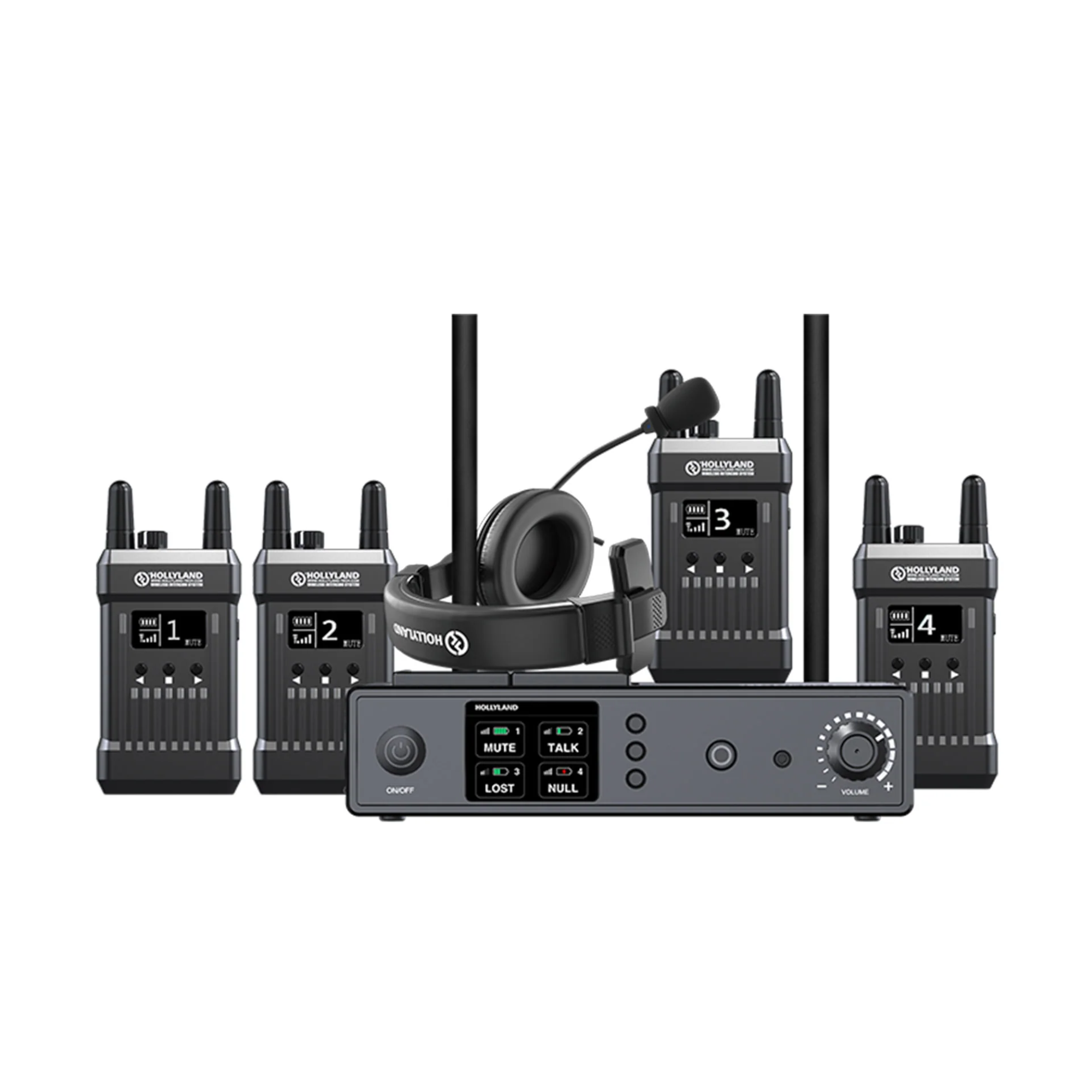 El Hollyland Mars T1000, permite la comunicación bidireccional en un rango de hasta 300 mts. Incluye una estación base, cuatro transmisores /emisores de petaca y cinco auriculares. La estación base se alimenta de un adaptador de alimentación de CA incluido con conector XLR de 4 pines.